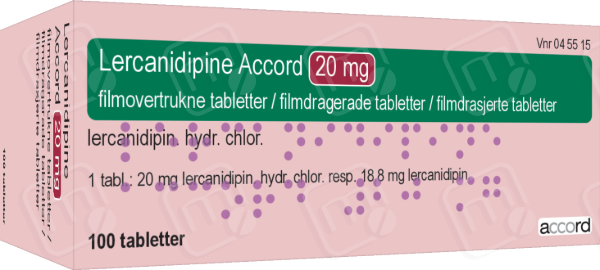 Lercanidipine Accord, lercanidipinhydrochlorid, tilhører en gruppe lægemidler, der kaldes calciumkanalblokkere (dihydropyridin-derivater), som sænker blodtrykket. Lercanidipine Accord anvendes til at behandle forhøjet blodtryk (hypertension) hos voksne over 18 år (det frarådes til børn eller unge under 18 år).