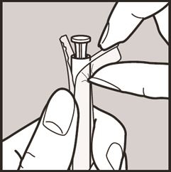 3. Vaginaltabletten udløses ved at trykke forsigtigt på stempelknappen, indtil du mærker et klik. Tabletten hæfter sig fast på slimhinden med det samme.
