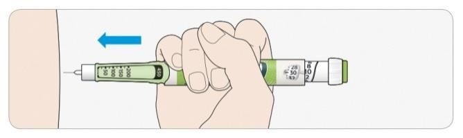 E Slip dosisknappen efter du har holdt den inde og langsomt talt til 5. Fjern derefter nålen fra huden.