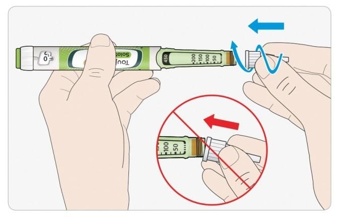 • Brug aldrig en sprøjte til at fjerne Toujeo fra din pen. Dette er for at undgå doseringsfejl og potentiel overdosis, som kan medføre lavt blodsukker.