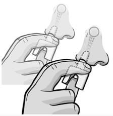 Tryk ikke på stemplet, før du indsætter EURneffy næsespray i et næsebor, ellers vil enkeltdosen gå til spilde før brug.
